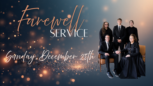 Bishop AJ Dummitt and his family's last service with us will be December 28th, 2025. We will be compiling a special video gift to the Dummitt family, and you are invited to participate. We are asking for families to be recorded sharing a memory or encouraging words with Bishop and his family. It can be as short as a sentence or two or as long as about one minute. If you're not wanting to record a video, you can also have the option to simply have a picture taken of your family to be included in the video compilation.